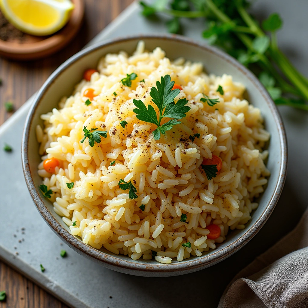A fragrant and flavourful rice pilaf, infused with fresh herbs and subtle spices, perfect as a versatile side dish.